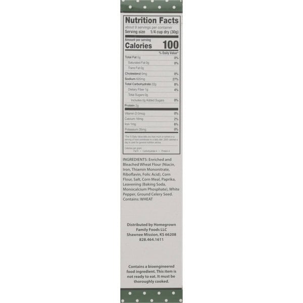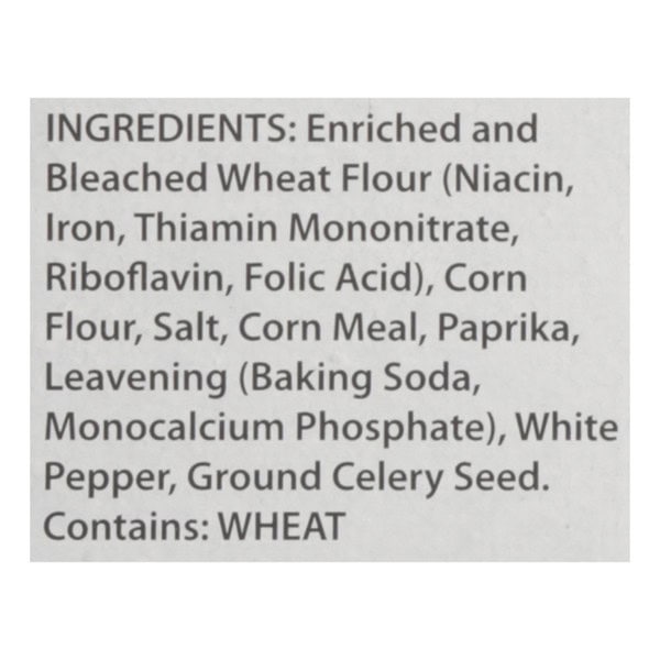 Enriched And Bleached Wheat Flour (niacin, Iron, Thiamin Mononitrate, Riboflavin, Folic Acid), Corn Flour, Salt, Corn Meal, Paprika, Leavening (baking Soda, Monocalcium Phosphate), White Pepper, Ground Celery Seed.