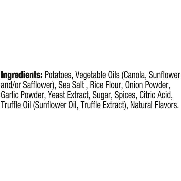 Potatoes, Vegetable Oils (canola, Sunflower And/or Safflower), Sea Salt, Rice Flour, Onion Powder, Garlic Powder, Yeast Extract, Sugar, Spices, Citric Acid, Truffle Oil (sunflower Oil, Truffle Extract), Natural Flavors