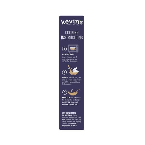 Cooking Instructions: 1. Heat Bowl: Leave film on bowl, and microwave on high for 3 minutes. 2. Stir: Pull back film, stir, and re-cover. Microwave on high for additional 1.5 minutes. 3. Enjoy!: Stir, let stand for 1 minute, and enjoy! Caution: Tray and contents will be hot. Keep bowl frozen; Do not thaw. Cooking instructions developed using 1100 watt microwave oven. Ovens vary; cooking times may need adjusting. Cook dish to a minimum temperature of 165 degrees F.
