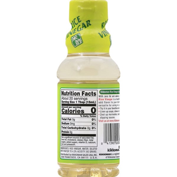 Kikkoman Rice Vinegar Usage & Tips: With zero fat and calories, Kikkoman Rice Vinegar is a healthy way to add flavor to your dishes! It’s versatile for using in any recipe. Try it in your favorite salad dressings. Liven up soups, stews and stir-fries. Zest up marinades, barbecue and dipping sauces.