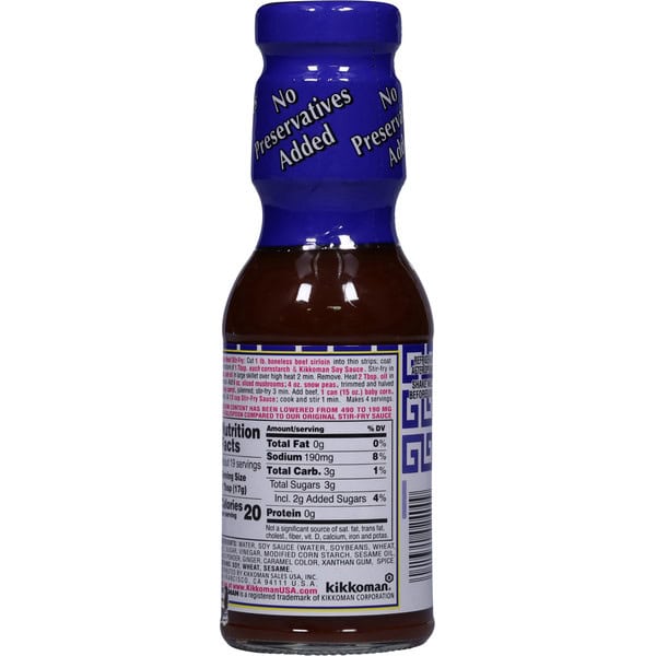 It’s easy to make authentic Chinese-style stir-frys with Kikkoman Stir-Fry Sauce. Pre-seasoned and pre-thickened, you can use it right from the bottle for meat, poultry, seafood or vegetable stir-frys. Kikkoman Stir-Fry Sauce is a blend of Kikkoman Soy Sauce, sherry, garlic, oyster sauce and Asian seasonings. It is a versatile recipe ingredient that’s ideal for seasoning Chinese fried rice and chow mein, as well as American favorites such as meatloaf and stew.
