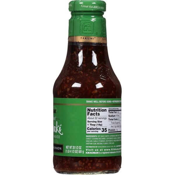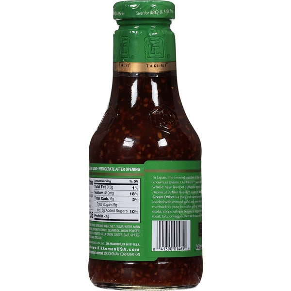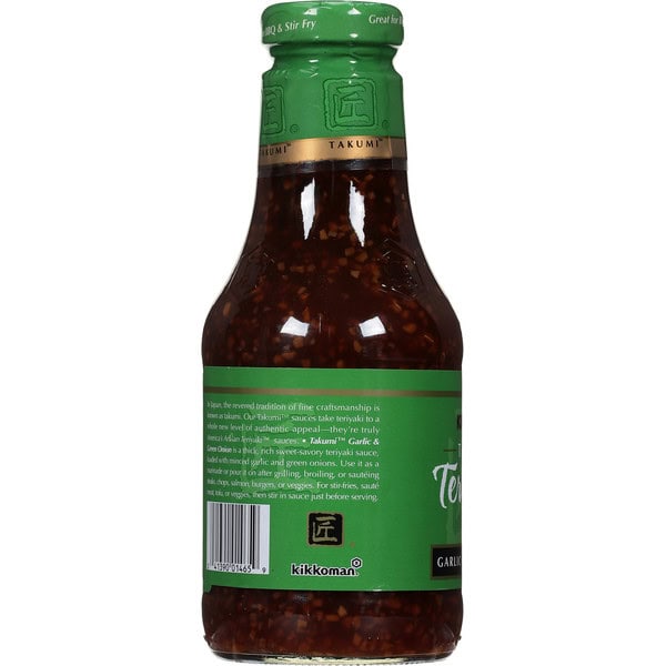 In Japan, the revered tradition of fine craftsmanship is known as Takumi. Our Takumi sauces take teriyaki to a whole new level of authentic appeal – they’re truly America’s Artisan Teriyaki sauces. Takumi Garlic & Green Onion is a thick, rich sweet-savory teriyaki sauce, loaded with minced garlic and green onions. Use it as a marinade or pour it on after grilling, broiling, or sauteing steaks, chops, salmon, burgers, or veggies. For stir-fries, saute meat, tofu, or veggies, then stir in sauce just before serving.