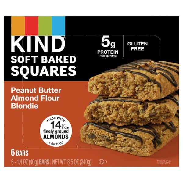 KIND Soft Baked Squares balance the indulgence you crave with the goodness you want. Every snack bar brings you the perfect combination of real ingredients like #1 ingredient finely ground almonds, soft baked texture, and tempting taste. Includes one, 8.5-ounce box of six Peanut Butter Almond Flour Blondie squares topped with smooth, chocolatey drizzle. These soft and chewy snacks contain 14 or more finely ground almonds, a nutrient dense first ingredient. Every gluten free snack bar contains 5g protein and 8g sugar. Soft baked KIND bars make it easy to enjoy wholesomeness without giving up deliciousness. Grab an individually wrapped bar as an after-lunch treat, evening unwind, or late-night bite. Enjoy these tasty, gluten free alternatives to cookies, muffins, or cakes. Satisfy sweet cravings any time with KIND Soft Baked Squares gluten free snacks.