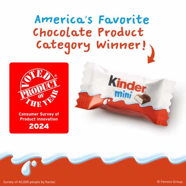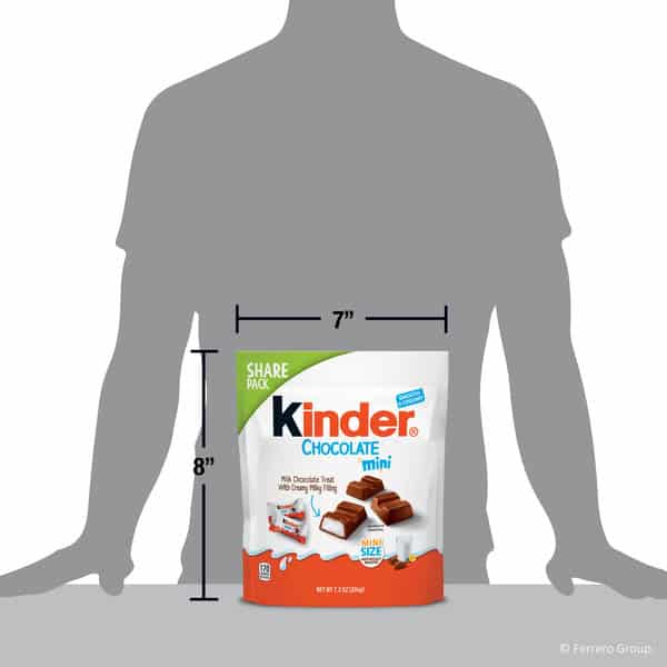 Enjoy smooth milk chocolate with a creamy, milky filling and discover the irresistible taste of Kinder Chocolate in this 7.2-ounce share pack of mini chocolate bars. Individually wrapped and perfectly portioned, Kinder Chocolate minis are great for sharing the delicious, creamy taste of Kinder with the ones you love. With Kinder Chocolate, little things really can mean a lot. That’s why every bar is made without artificial colors and preservatives. Crafted for kids, loved and shared by all. For over 70 years, Ferrero has created products loved by generations. We’ve grown from a bakery in Alba, Italy, into a confectionery company loved around the world. We’re committed to helping people celebrate life’s special moments with high-quality products. *Based upon a survey of 40,000 people by Kantar for America’s favorite chocolate product category.