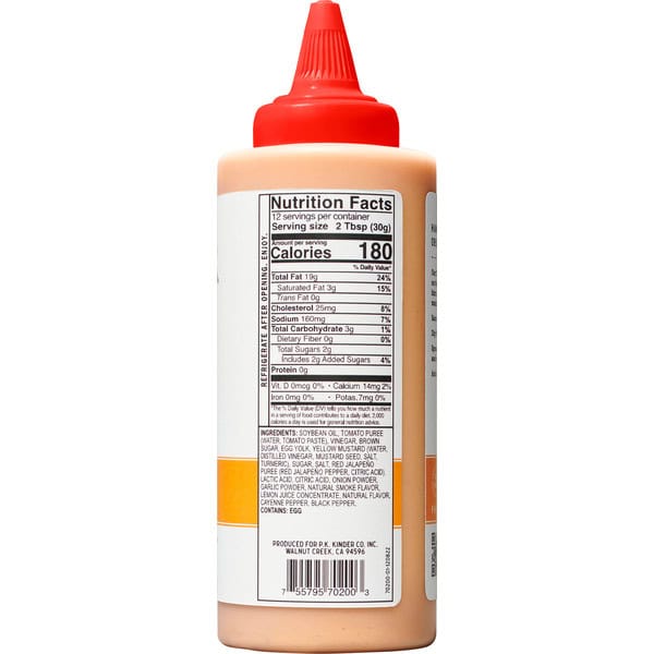 Soy Sauce (water, Soybeans, Wheat, Salt), Sugar, Tomato Puree (water, Tomato Paste), Ginger, Rice Vinegar, Dehydrated Garlic, Dehydrated Onion, Xanthan Gum, Toasted Sesame Oil