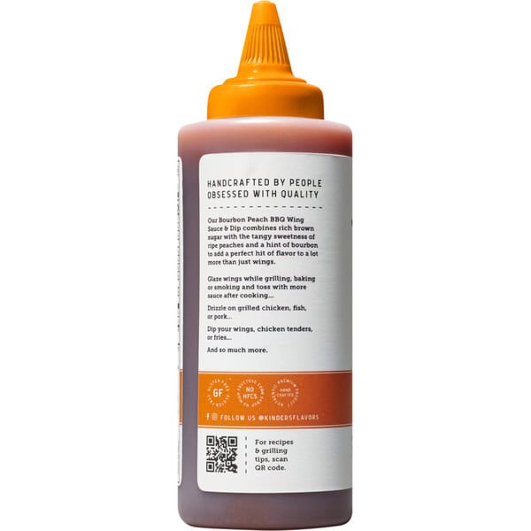 Premium quality. Est. 1946. Founded 1946. Master butcher – John Kinder. Handcrafted by people obsessed with quality. Our Bourbon Peach BBQ Wing Sauce & Dip combines rich brown sugar with the tangy sweetness of ripe peaches and a hint of bourbon to add a perfect hit of flavor to a lot more than just wings. Glaze wings while grilling, baking or smoking and toss with more sauce after cooking. Drizzle on grilled chicken, fish, or pork. Dip your wings, chicken tenders, or fries. And so much more. No HFCS: No high fructose corn syrup. Hand Crafted: Authentic premium product.