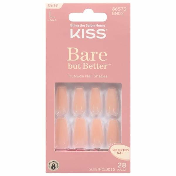 Prep: Clean nails with polish remover and wash hands thoroughly with soap; select correct size nail for each finger and set aside in order. Nails are sized by number, noted underneath nail. Application: 1. Apply glue to back of artificial nail. 2. Apply Glue to natural nail. 3. Align with cuticle, gently press on & hold for 5 seconds. Pointy nails might have sharp tips. Use enclosed file to gently smooth the edges of the tips. Expert Tip: Apply enough glue to avoid air pockets, secure adhesion and extend wear. Removal: Trim & file surface to disrupt protective top coat. Apply kiss glue off remover between artificial and natural nails or soak nails in acetone polish remover until soft. Wipe off softened mails & glue. Do not force or pull nails off.