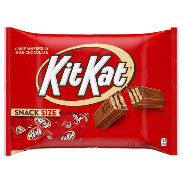 Ready for a classic everyone hopes to find in the candy dish? These snack-size KIT KAT® candy bars are individually wrapped for optimal convenience, easy sharing and lasting freshness. Whether you gift them to friends, pass them out in the office or hold onto them for snacking moments, you can expect a delicious treat in the perfect on-the-go size. Throw a few in your lunch box to treat yourself to a sweet dessert, or stock your home and office candy bowls with an easy snacking classic. Preparing for a specific occasion? Whether you need to put Easter baskets together, stuff holiday stockings, fill Valentine’s Day party favors, treat trick-or-treaters or just keep your everyday candy collection stocked throughout the year, KIT KAT® candy is the way to go. Getting ready for your next movie night? Add some crispy wafers coated in creamy milk chocolate for an extra special touch that satisfies the whole crowd. You can snack on these chocolate bars straight from the wrapper, chill them in the fridge for a cold treat or top your best baked goods with them to show off your culinary genius. No matter what you decide, it’s bound to be a delicious success!
