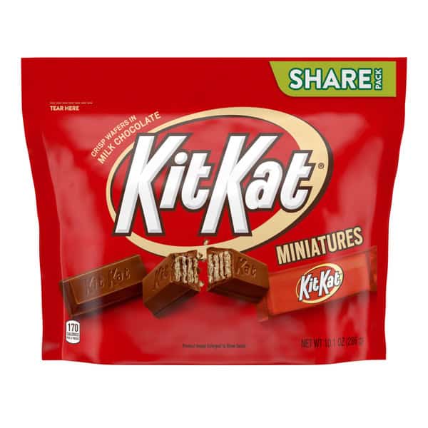 Ready for a classic everyone hopes to find in the candy dish? These KIT KAT® Miniatures candy bars are individually wrapped and placed in a share pack for optimal convenience, easy sharing and lasting freshness. Whether you gift them to friends, pass them out in the office to co-workers or hold onto them for snacking moments, you can expect a delicious treat in the perfect on-the-go size. Throw a few in your lunch box to treat yourself to a sweet dessert, or stock your home and office candy bowls with an easy snacking classic. Preparing for a specific occasion? Whether you need to put Easter baskets together, stuff holiday stockings, fill Valentine’s Day party favors, treat Halloween trick-or-treaters or just keep your everyday candy collection stocked throughout the year, KIT KAT® candy is the way to go. Getting ready for your next movie night? Add some crispy wafers coated in creamy milk chocolate for an extra special touch that satisfies the whole crowd. You can snack on these kosher certified, miniature chocolate bars straight from the wrapper, chill them in the fridge for a cold treat or top your best baked goods with them to show off your culinary genius. No matter what you decide, it’s bound to be a delicious success!