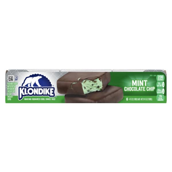 • This delicious frozen dessert comes in a 6-pack that lets you share your Klondike Mint Chocolate Chip Bars with friends and family