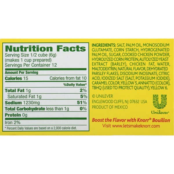 With other natural flavors. 15 calories per 1/2 cube. Boost the flavor with Knorr Bouillon. Visit www.letsmakeknorr.com. Questions or comments? Please call Toll Free 1-866-Knorr-01.