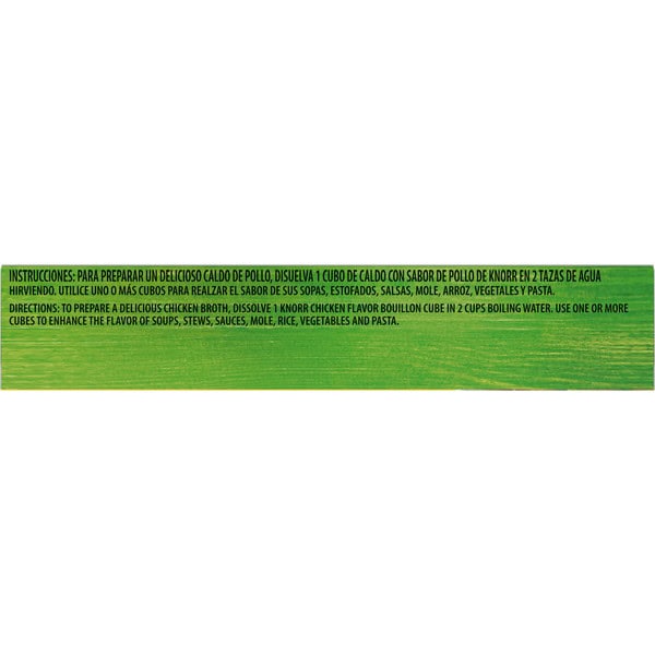 To prepare a delicious chicken broth, dissolve 1 knorr chicken flavor bouillon cube in 2 cups boiling water. Use one or more cubes to enhance the flavor of soups, stews, sauces, mole, rice, vegetables and pasta.