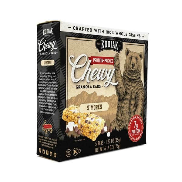 Kodiak Cakes S’mores Chewy Bars are made with 100% Whole Grains, non-GMO ingredients, and offer 7 grams of protein per serving. These bars offer up a chewy, delicious, and balanced alternative when it comes to snacks for hungry folks of all ages.