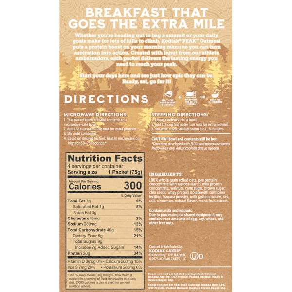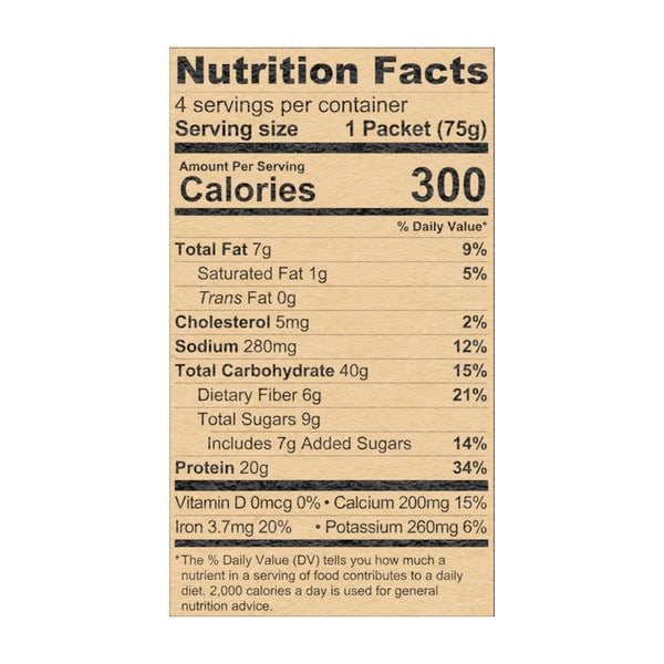 Add 1/2 cup water or milk & stir well + microwave for 60-75 seconds or steep for 2-3 minutes. Microwave Directions: 1. Tear packet open and add contents to a microwave-safe bowl. 2. Add 1/2 cup water (use milk for extra protein). 3. Stir until combined. 4. Based on desired texture, heat in microwave on high for 60-75 seconds (Directions developed with 1100-watt microwave ovens. Microwaves vary. Adjust cooking times as needed). Steeping Directions: 1. Empty contents into a bowl. 2. Add 1/2 cup hot water (use milk for extra protein). 3. Stir well, cover, and let stand for 2-3 minutes. Caution! Bowl and contents will be hot.