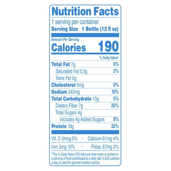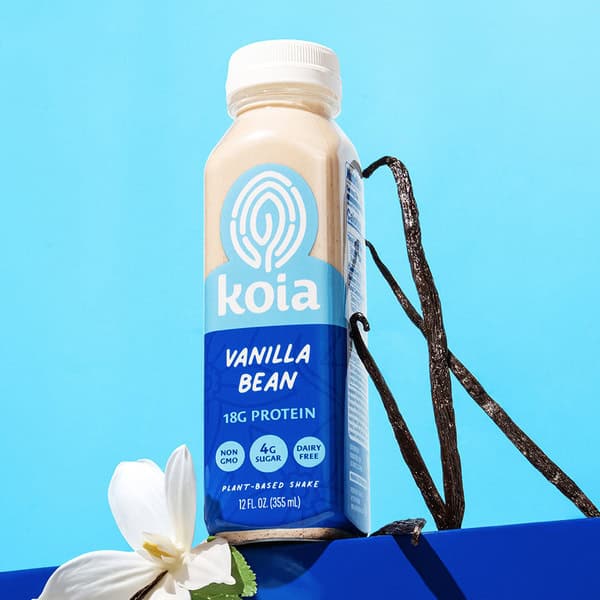 almond milk (filtered water, almonds), Koia proprietary protein blend (brown rice protein, pea protein, chickpea protein), koia prebiotic fiber (agave fiber, chicory root fiber), organic cane sugar, natural flavors, vanilla extract, sunflower lecithin, sea salt, monk fruit extract, locust bean gum, and gellan gum