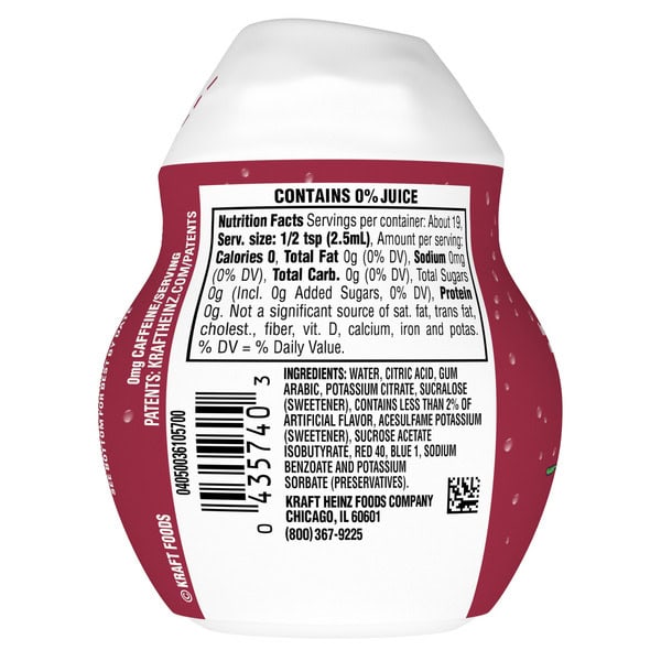 Kool Aid Liquid Artificially Flavored Cherry Drink Mix is a delicious way to stay hydrated. Our liquid drink mix makes it easy to prepare a tasty cherry fruit drink wherever the day takes you. Just squeeze our artificially flavored drink mix into a glass or bottle of water and you’re ready to enjoy refreshingly sweet cherry flavor. With zero sugar and zero calories, our cherry fruit drink concentrate is a great choice that the whole family will enjoy. Enjoy a revitalizing sugar free fruit drink at work, home or in a water bottle on the go. Our 1.62 fluid ounce bottle of Kool Aid Liquid Artificially Flavored Cherry Drink Mix concentrate is a great way to enjoy your favorite drink anytime, anywhere. If you like our Kool Aid mix water enhancer, try our drink packets and powdered drink mix singles.