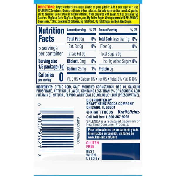 Empty Contents Into Large Plastic Or Glass Pitcher. Add 1 Cup Sugar Or 1 Cup Splenda® Sweetener, Granulated (More Or Less To Taste). Add Cold Water And Ice To Make 2 Quarts; Stir To Dissolve. Do Not Store In Metal Container.