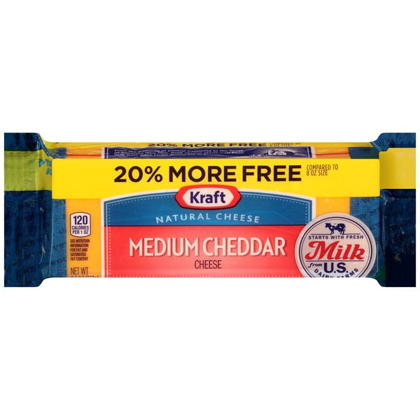 Mealtime can be hard, especially when it comes to making something everyone agrees on. Use Kraft Medium Cheddar Cheese Block to make something everyone will love, so you can spend time focused on each other and not worried about making everyone happy. This block of cheddar has a rich, full flavor that’s perfect for any dish. This cheddar cheese block features a tangy flavor and smooth, creamy texture. This cheese block is easy to slice, cube or shred depending on the recipe you’re following. Always made from fresh milk and backed by over 100 years of cheese-making expertise, Kraft is the perfect cheese for your family. Use this cheese block as a cheddar cheese dip, in classic mac and cheese, slice it for a cheese board, or cube it for a meat and cheese appetizer tray. For optimum flavor, keep this cheese refrigerated. Made with milk from cows raised without added rbST hormone. No significant difference has been shown between milk derived from rbST-treated and non-rbST treated cows., ● One 9.6 oz package of Kraft Medium Cheddar Cheese Block, ● Kraft Medium Cheddar Cheese Block backed by years of cheese-making experience, ● Every batch of Kraft Cheese starts with fresh milk for creamy flavor, ● Say yes to the rich cheese taste you and your family will love, ● Convenient cheese block is perfect for shredding, slicing, or snacking, ● Enhance your next meal with Kraft Medium Cheddar Cheese Block, ● Easy tear packaging for simple meal prep