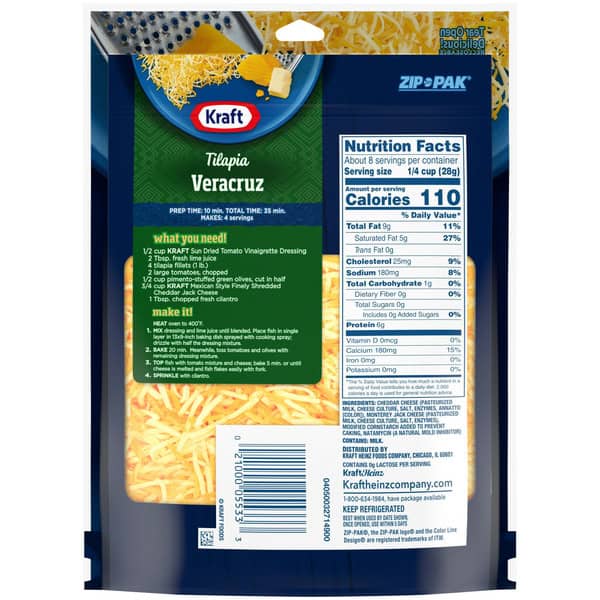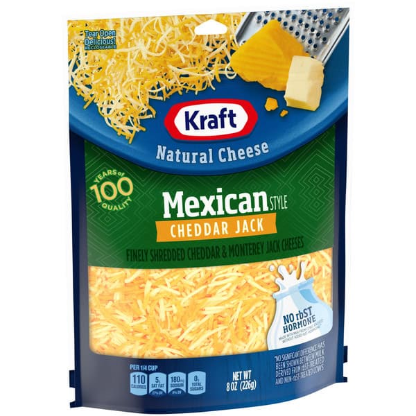 • Enhance your next meal with Kraft Natural Mexican Style Cheddar Jack Shredded Cheese
