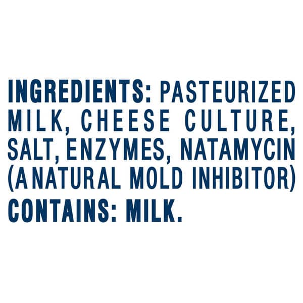 Pasteurized Milk, Cheese Culture Salt, Enzymes, Natamycin (anatural Mold Inhibitor)