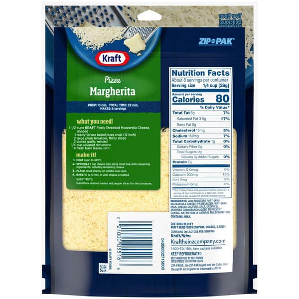 • Enhance your next meal with Kraft Finely Shredded Natural Mozzarella Shredded Cheese