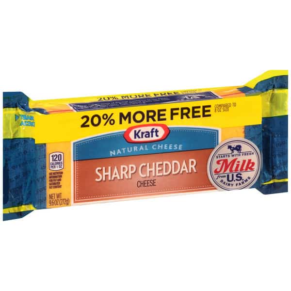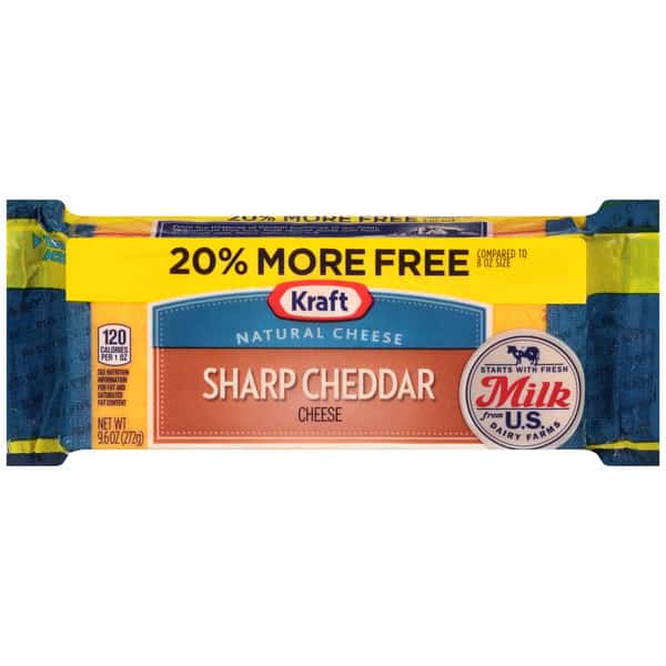 • One 9.6 oz Kraft Sharp Cheddar Cheese Block