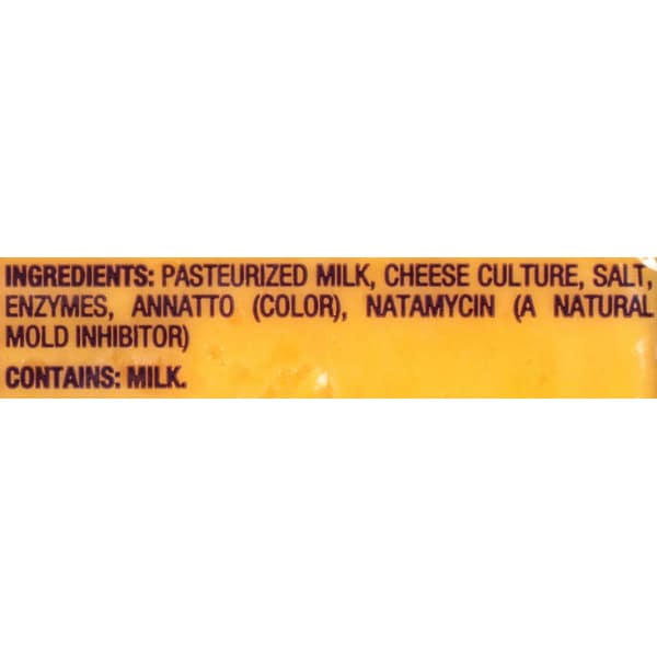 Pasteurized Milk, Cheese Culture, Salt, Enzymes, Annatto (color), Natamycin (a Natural Mold Inhibitor)