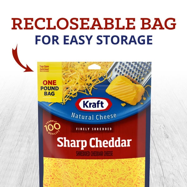 • Kraft Finely Shredded Natural Sharp Cheddar Shredded Cheese is backed by years of cheese-making experience