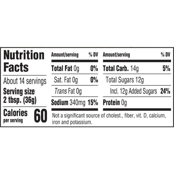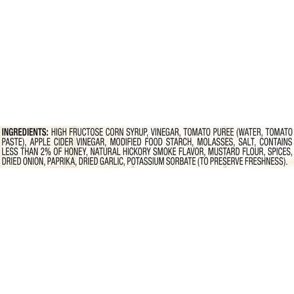 High Fructose Corn Syrup, Vinegar, Tomato Puree (water, Tomato Paste), Apple Cider Vinegar, Modified Food Starch, Molasses, Salt, Contains Less Than 2% Of Honey, Natural Hickory Smoke Flavor, Mustard Flour, Spices, Dried Onion, Paprika, Dried Garlic, Potassium Sorbate (to Preserve Freshness)