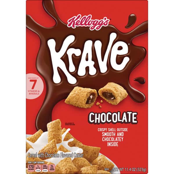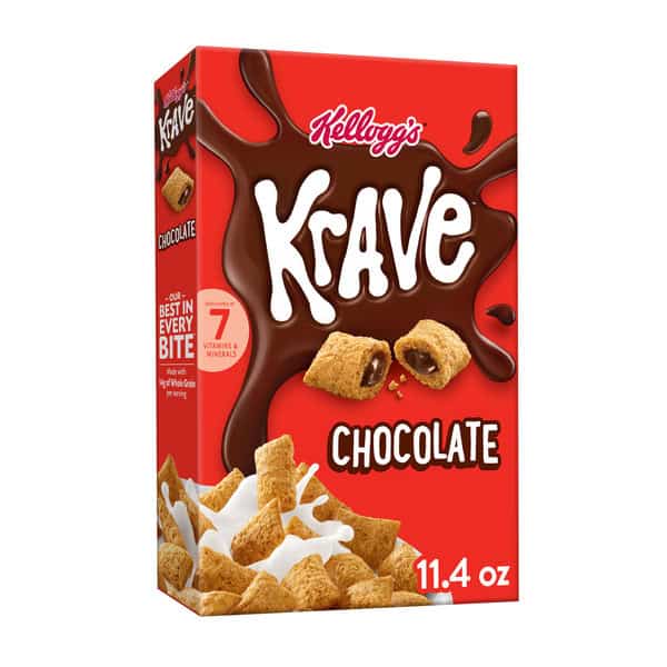 Crafted for chocovores, Kellogg’s Krave Chocolate breakfast cereal is a distinctly delicious combo of crunchy multigrain cereal shells and filling made with real chocolate. A good source of 7 vitamins and minerals and made with no high fructose corn syrup, Kellogg’s Krave Chocolate breakfast cereal is a yummy way to start the day. Not just for breakfast, Kellogg’s Krave is a tasty addition to any meal or snack any time of the day. Enjoy as a well-deserved snack at the office, take as an afternoon pick-me-up, reenergize with a post-workout treat, and indulge in a late-night bowlful of sweet, crunchy cereal. Kellogg’s Krave Chocolate breakfast cereal also makes a scrumptious addition to homemade trail mix – the delicious options are endless. Pack some in a plastic bag for lunch boxes and busy, on-the-go moments. Just add your favorite dairy or nut-milk or enjoy as a crispy treat straight from the box.