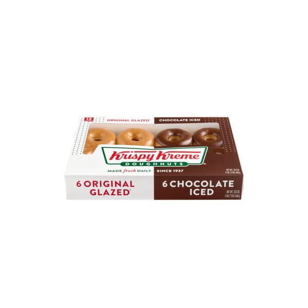 • Includes 6 Original Glazed® Doughnuts and 6 Chocolate Iced Doughnuts