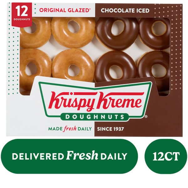 Krispy Kreme® 12-Count Doughnut Duo is delivered fresh daily from your local Krispy Kreme shop directly to select grocery stores. Featuring two of the best-selling Krispy Kreme doughnut varieties, the 12-Count Doughnut Duo is a crowd-pleaser for any shareable or sweet occasion!