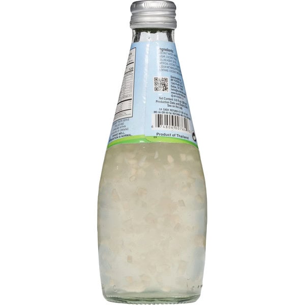 Coconut Water, Water, Sugar, Coconut Pulp, Gelling Agent (e418), Artificial Coconut Flavor, Sodium Metabisulphite (e223)