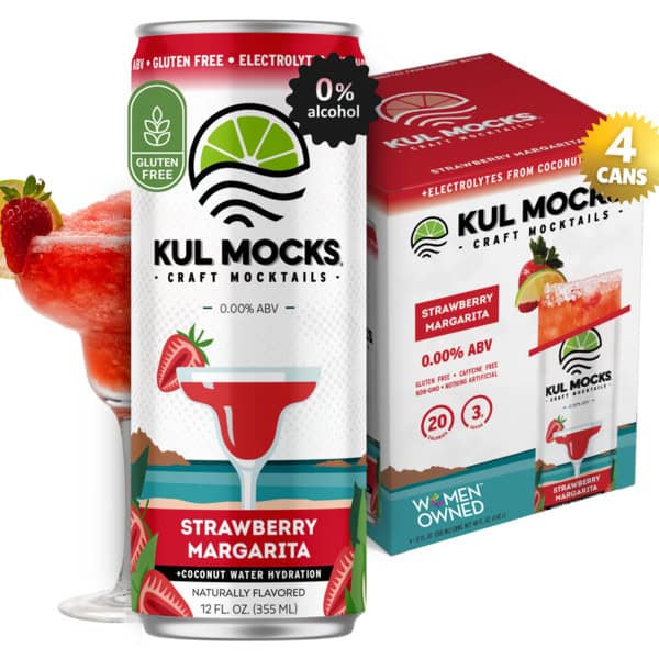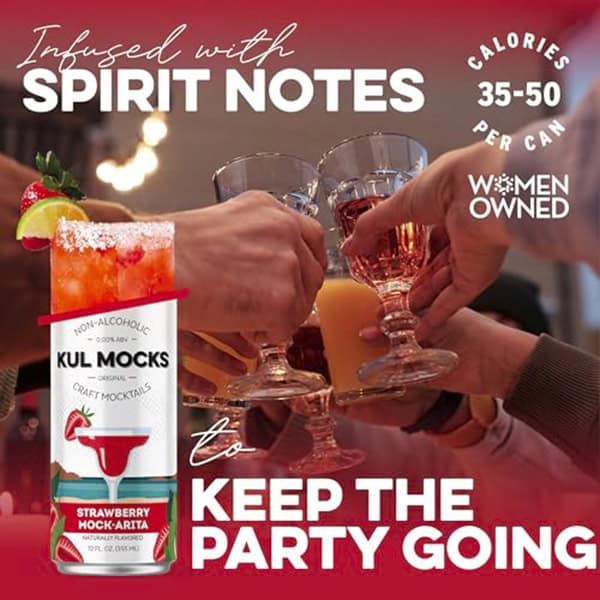 0.00% ABV: Infused with spirit notes to mimic the classic cocktail experience – The KUL MOCKS lineup comes in 3 delicious flavors: The Strawberry Margarita The Mock Mule The Blackberry Mock-jito
