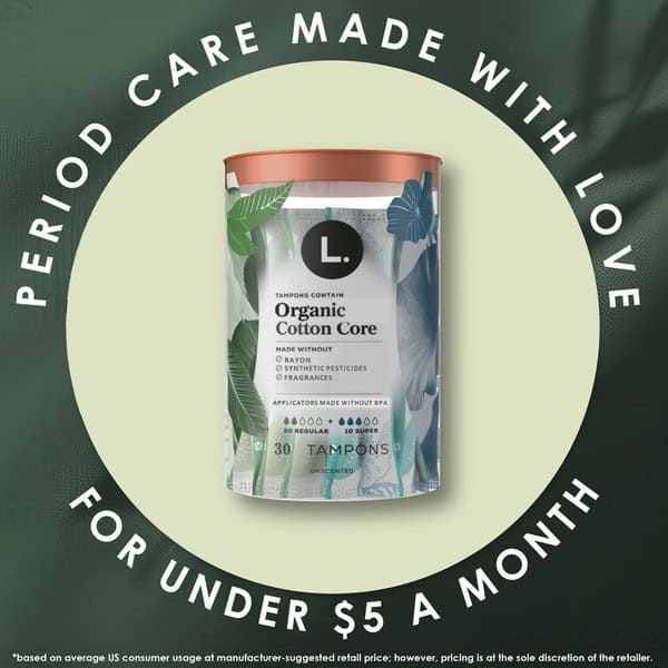 L. IS FOR LOVING YOUR BODY: Our tampons are made with an organic cotton core, made without rayon, fragrances, and synthetic pesticides. That’s what we call period care designed with every body and every budget in mind. *** L. IS FOR LOVING YOUR BUDGET: We are committed to making high-quality period care accessible to everybody, and for that reason our tampons won’t stress out your budget. L. makes premium products accessible without the premium price because we believe that access to high-quality period care is a fundamental right for everybody. *** L. IS FOR LENDING A HAND: We see access to period care not only as a fundamental right for everybody, but an opportunity for change as well. We are on a mission to make exceptional period care accessible for all. That’s why we provide funding every year to non-profit, community-based organizations around the world that increase sustainable access to period care products, menstrual health education, and employment opportunities. This is L. is exceptional period care made accessible for all. *** L. IS FOR LEADING WITH TRUST AND TRANSPARENCY: We will continue to prominently feature our ingredients on our packaging so that when you reach for our products, you’ll know exactly what’s in them and what role each ingredient plays. We assess all of our ingredients for safety so you know our products are safe for you to use. Your trust in our products is what keeps us innovating and continuing along our period protection journey.