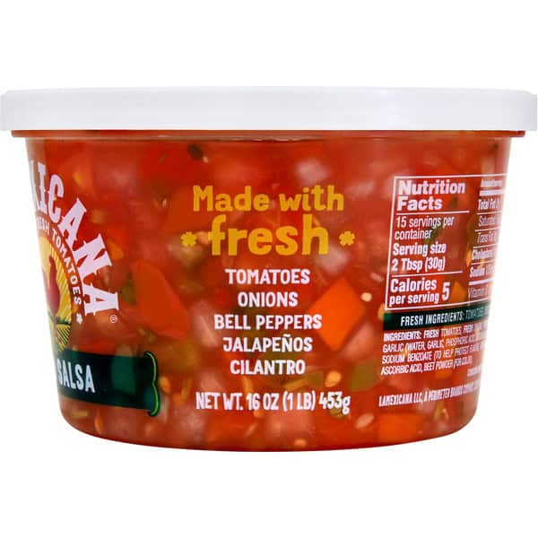 La Mexicana Salsa’s fresh, authentic recipes contain the finest farm-fresh produce. This refrigerated produce & deli salsa has mild heat and a delectable, refreshing flavor. Great with tortilla chips, as an appetizer, or a Mexican salad topper. The perfect burst of excitement for your favorite Mexican food. You’ll be proud to bring friends & family together to share La Mexicana Mild Salsa at any gathering, and you can feel good about indulging at home. Salsa is a low-calorie food with no added sugars and no high fructose corn syrup. Experience the vibrant flavors of La Mexicana, where every bite tastes as salsa fresh as if it were made in your own kitchen.