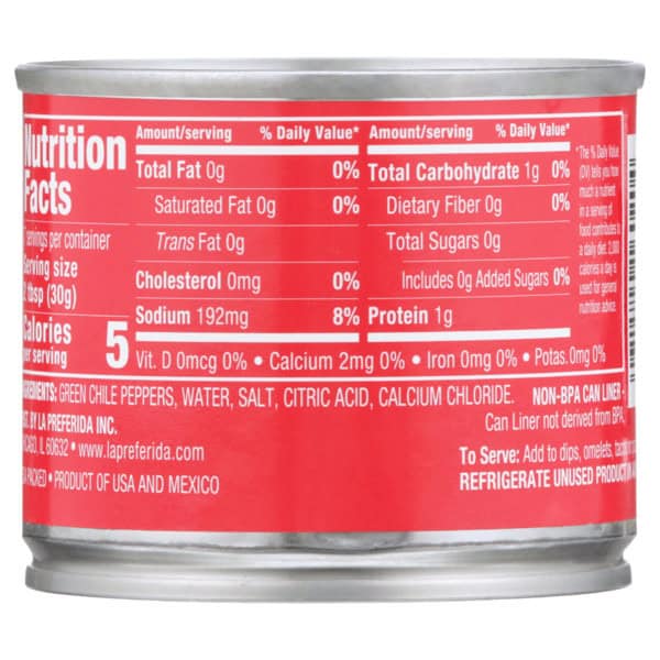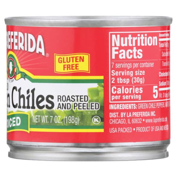 Green Chile Peppers, Water, Salt, Citric Acid, Calcium Chloride