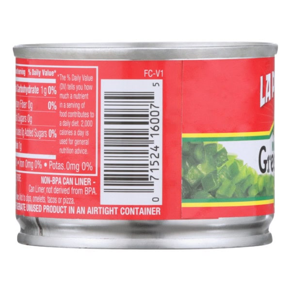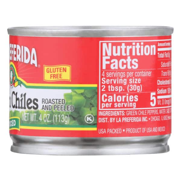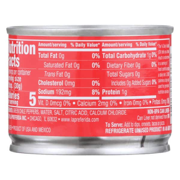 Green Chile Peppers, Water, Salt, Citric Acid, Calcium Chloride