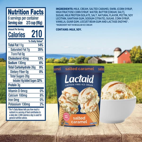 Milk, Cream, Salted Caramel Swirl (corn Syrup, High Fructose Corn Syrup, Water, Butter [cream, Salt], Sugar, Milk Protein Isolate, Salt, Natural Flavor, Pectin, Soy Lecithin, Xanthan Gum, Sodium Citrate), Sugar, Corn Syrup, Vanilla, Guar Gum, Locust Bean Gum And Lactase Enzyme*.