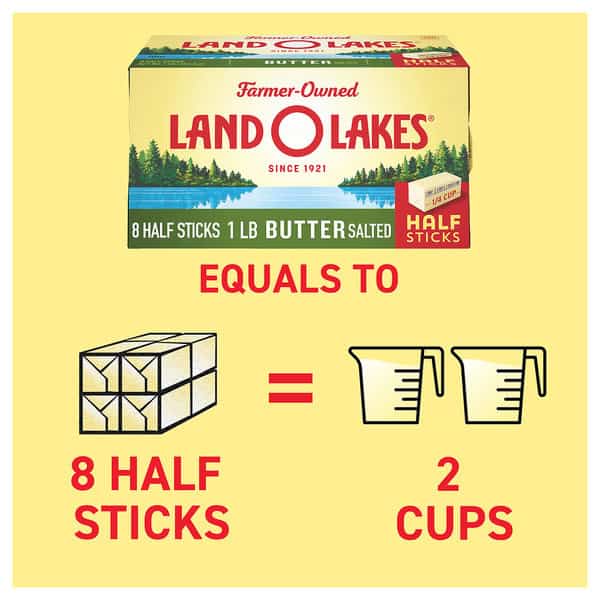 Whether melted, browned, creamed or clarified, Land O Lakes Salted Butter sticks improve the taste of everything they touch. Land O Lakes Salted Butter is made with two ingredients – sweet cream and salt. Delight your family and friends at spring brunch with the rich flavor of Land O Lakes Salted Butter. Use these eight salted butter half sticks in your favorite dinner recipes or to create delicious baked goods like muffins, pies, cookies and cakes. It’s also ideal for making grilled cheese sandwiches with a golden, crispy edge. No matter how you use it, this stick butter will take your cooking to a whole new level. Land O Lakes Butter comes in pre-measured, ready-to-use butter sticks that are individually wrapped in our FlavorProtect wrapper to protect the flavor you love. You can enjoy these salted butter sticks knowing you are supporting farmer-owners in communities across the country. Contains 8 half sticks, 1 lb pack in total.