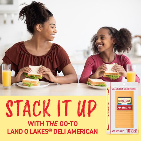 • YELLOW AMERICAN DELI CHEESE PRODUCT: Land O Lakes Deli American is the staple for lunchtime sandwiches, gooey grilled cheese and juicy burgers; The ultimate sandwich secret weapon