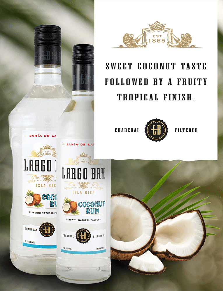 Caribbean – A sweet, smooth, coconut flavored White Rum. Fresh coconut and almond flavors make this a great spirit to enjoy on the rocks, with cola, in tropical cocktails or other mixed drinks. Double Gold Medal- San Francisco Spirits Competition.