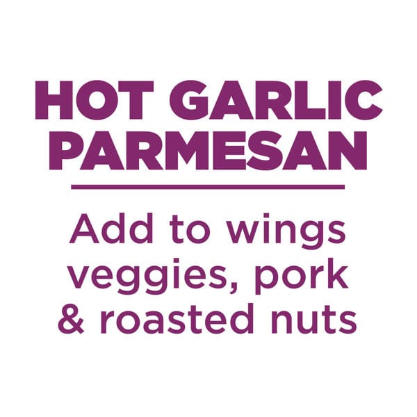 Looking to make dinnertime extra with minimal effort? Hot Garlic Parmesan Seasoning comes to the rescue. It adds bold flavor to all of your family’s favorite meals, including meatballs, roast chicken thighs, shrimp scampi, pasta, potatoes and garlic bread. On game days, shake Hot Garlic Parmesan Seasoning on chicken wings or chicken tenders, French fries and popcorn. When you’re grilling, the seasoning makes a flavorful rub for meats or whisk it into a marinade.