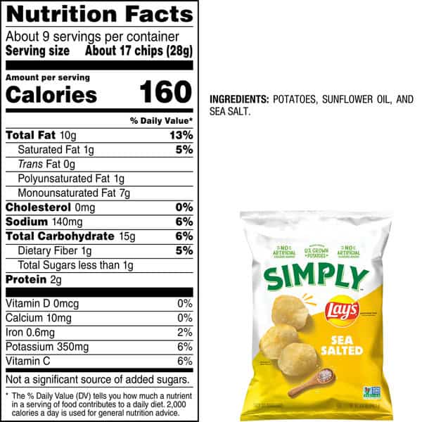 • 9.0 oz. bag of Simply LAY’S Sea Salted Thick Cut Potato Chips.