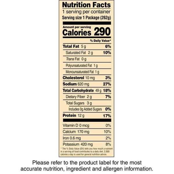 • NOT YOUR MOTHER’S DIET FOOD: One delicious 9.25-ounce microwave meal provides 12 grams of protein, 2 grams of fiber and 10% daily value of calcium for a frozen food you can feel good about.