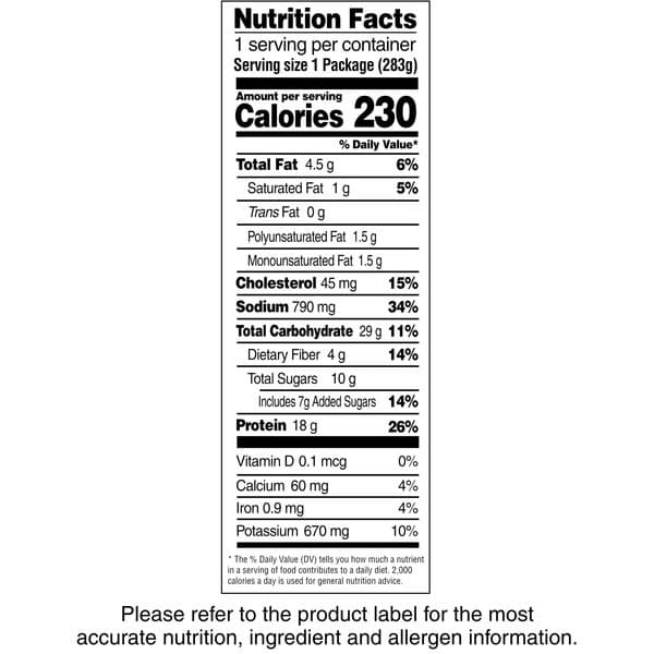 • NOT YOUR MOTHER’S DIET FOOD: One delicious 10-ounce microwave meal provides 17 grams of protein and 0.5 cup of veggies per serving for a frozen food you can feel good about.