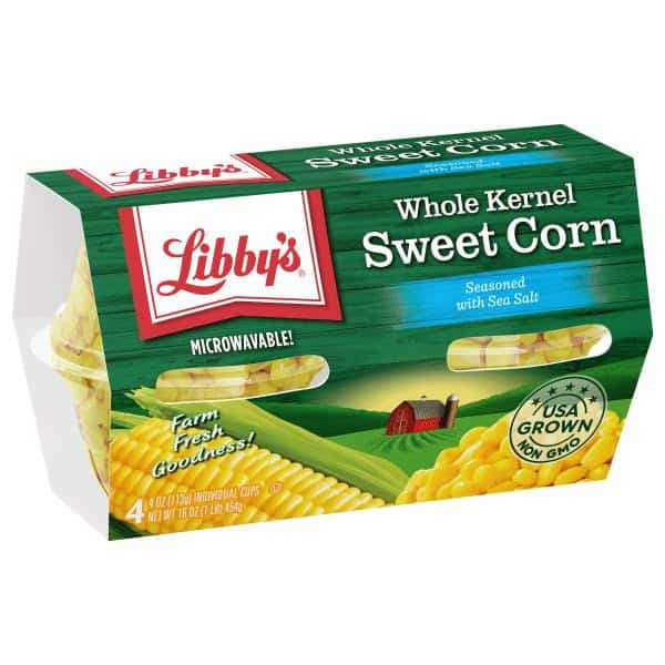 EXCEPTIONALLY DELICIOUS TASTE: Libby’s Whole Kernel Sweet Corn is fresh picked at the peak of ripeness and packed within hours to seal in Farm Fresh Goodness for naturally sweet corn flavor, bright golden yellow color and just-off-the-cob crispness. Conveniently packed in single-serve, portable 4 oz. plastic cups perfect for snacking, school, work lunches and more.