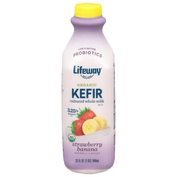 Live & active probiotics. Est. 1986. Vit. D. 3.25% milkfat (See nutrition information for saturated fat content). The Lifeway Kefir Story My family’s American dream began when we immigrated to the United States in 1976 from Kyiv, which was then part of the former Soviet Union. My father Michael loved his new home, but missed kefir, a probiotic superfood staple of the Eastern European diet for nearly 2,000 years. An engineer by trade, he brought this ancient healing beverage to the American masses in 1986 when our first bottles of Lifeway Kefir officially went into production. Known as the Champagne of Dairy, Lifeway Kefir is a tart, tangy, slightly effervescent taste of the folk wisdom that has been passed down by my ancestors for generations and has nourished countless families for centuries. I love your guts, Julie, CEO. We use milk that has not been treated with artificial hormones or antibiotics (No significant difference has been shown between milk derived from rBST treated cows and non-rBST treated cows). Fermentation keeps the kefir fresh until the expiration date stamped on the bottle, regardless of when you open it. Remove label to recycle bottle.