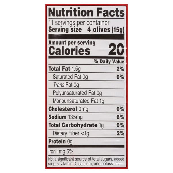 Ripe Manzanilla Olives, Water, Sea Salt, Ferrous Gluconate (to Stabilize Color)