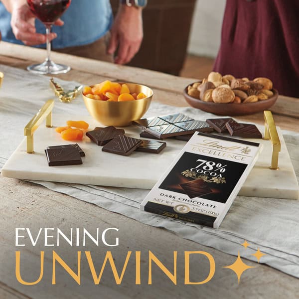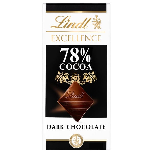 Dive into the refined richness of a Lindt EXCELLENCE 78% Cocoa Dark Chocolate Bar with all your senses. This full-bodied dark chocolate bar features a deep, dark color and attractive aroma with well-balanced cocoa notes that are robust, but not too intense, with an exceptionally silky feel. The sophisticated flavors in this dark chocolate candy bar make this gourmet chocolate the perfect pairing with cabernet sauvignon. Give a dark chocolate candy bar to your favorite chocolate connoisseur, or use them as baking chocolate for intense cocoa flavor in your desserts. This Lindt dark chocolate bar comes portioned into bite size squares, ensuring balanced complexity in each bite. Lindt chocolate is masterfully crafted using the highest-quality ingredients from world-renowned regions, embodying the passion and craftsmanship of Lindt Master Chocolatiers. *Information online not complete; check label of actual product being purchased.*